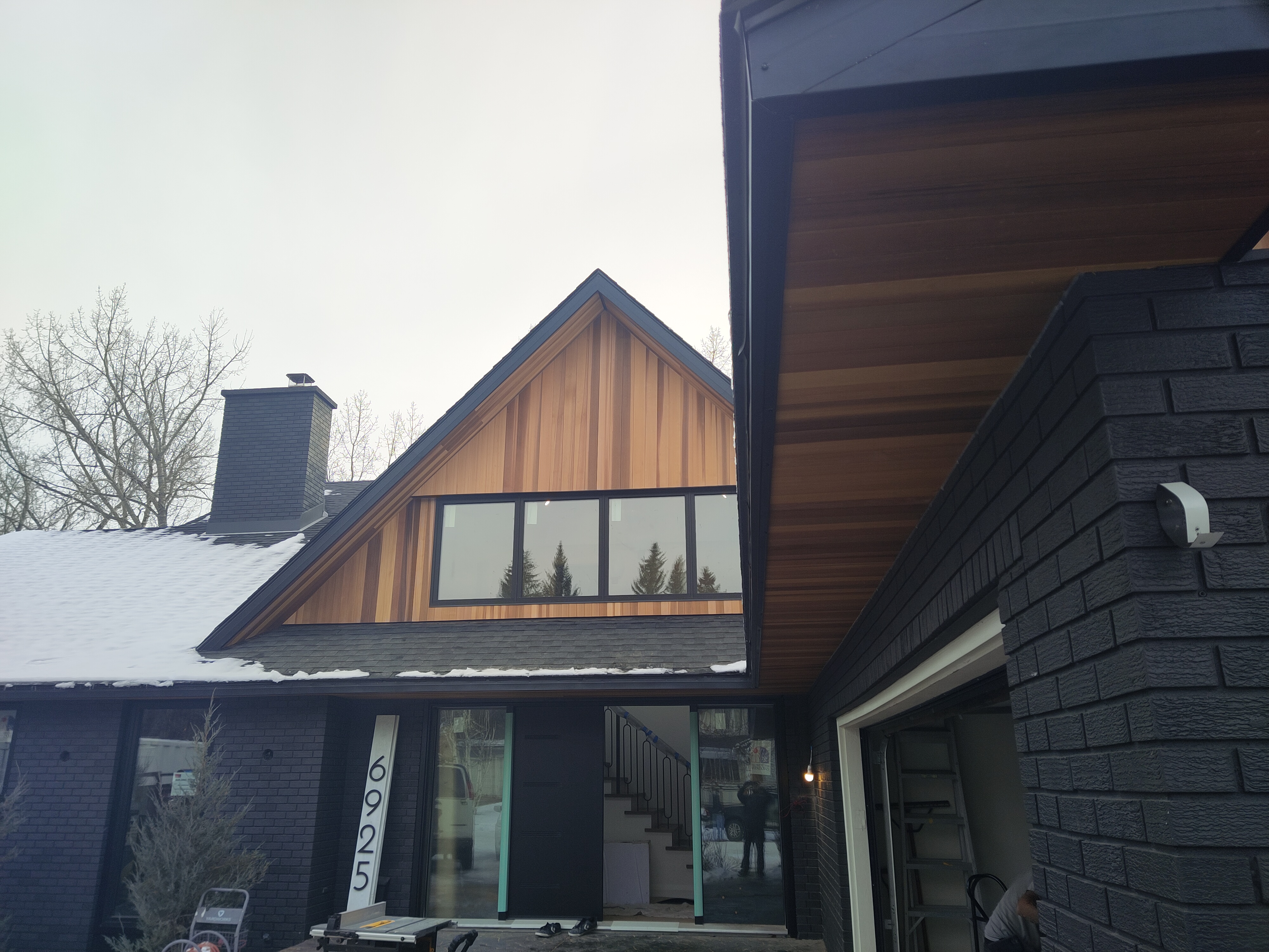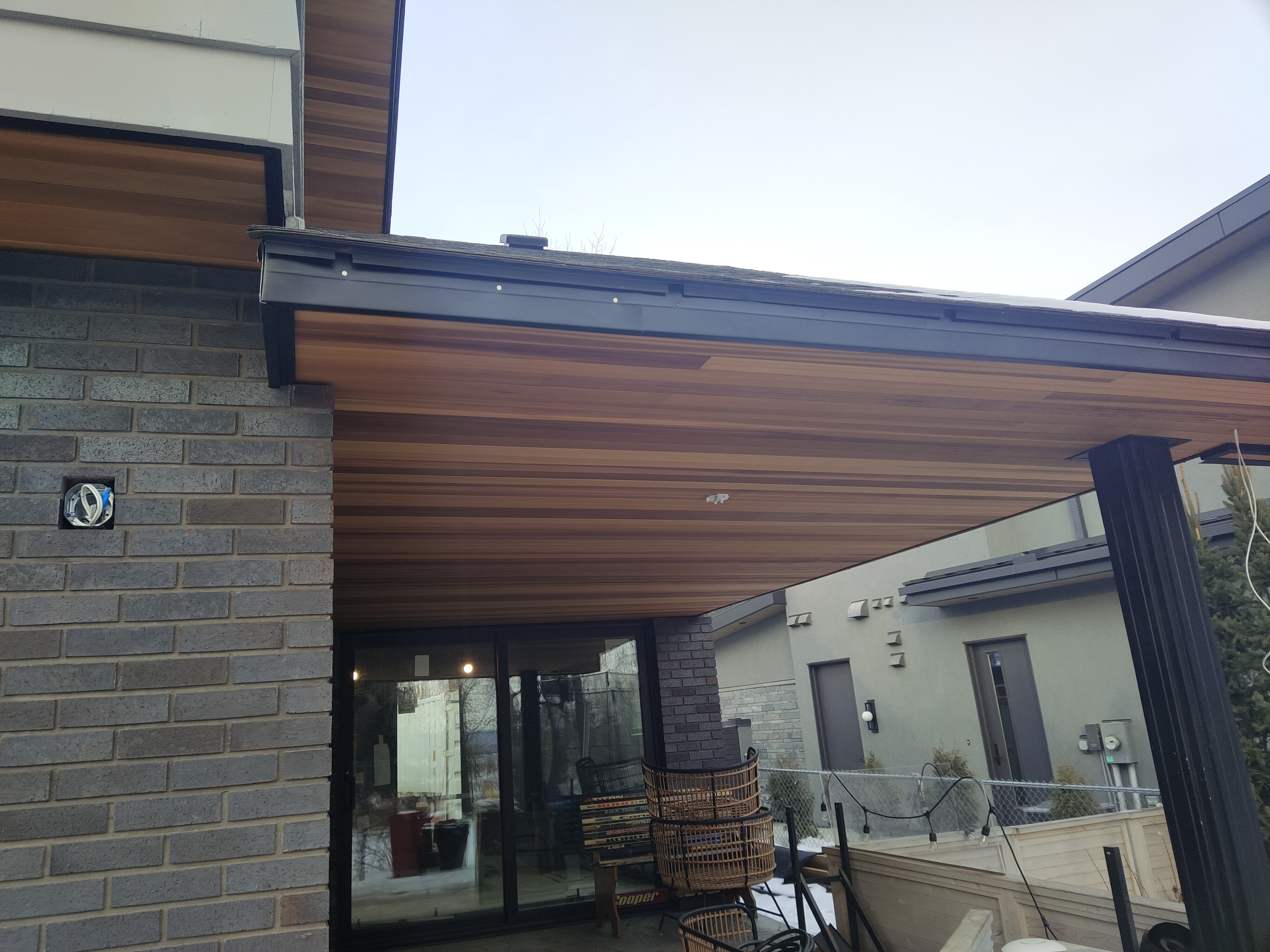 This is a cedar siding and soffit renovation for a house in Lakeview