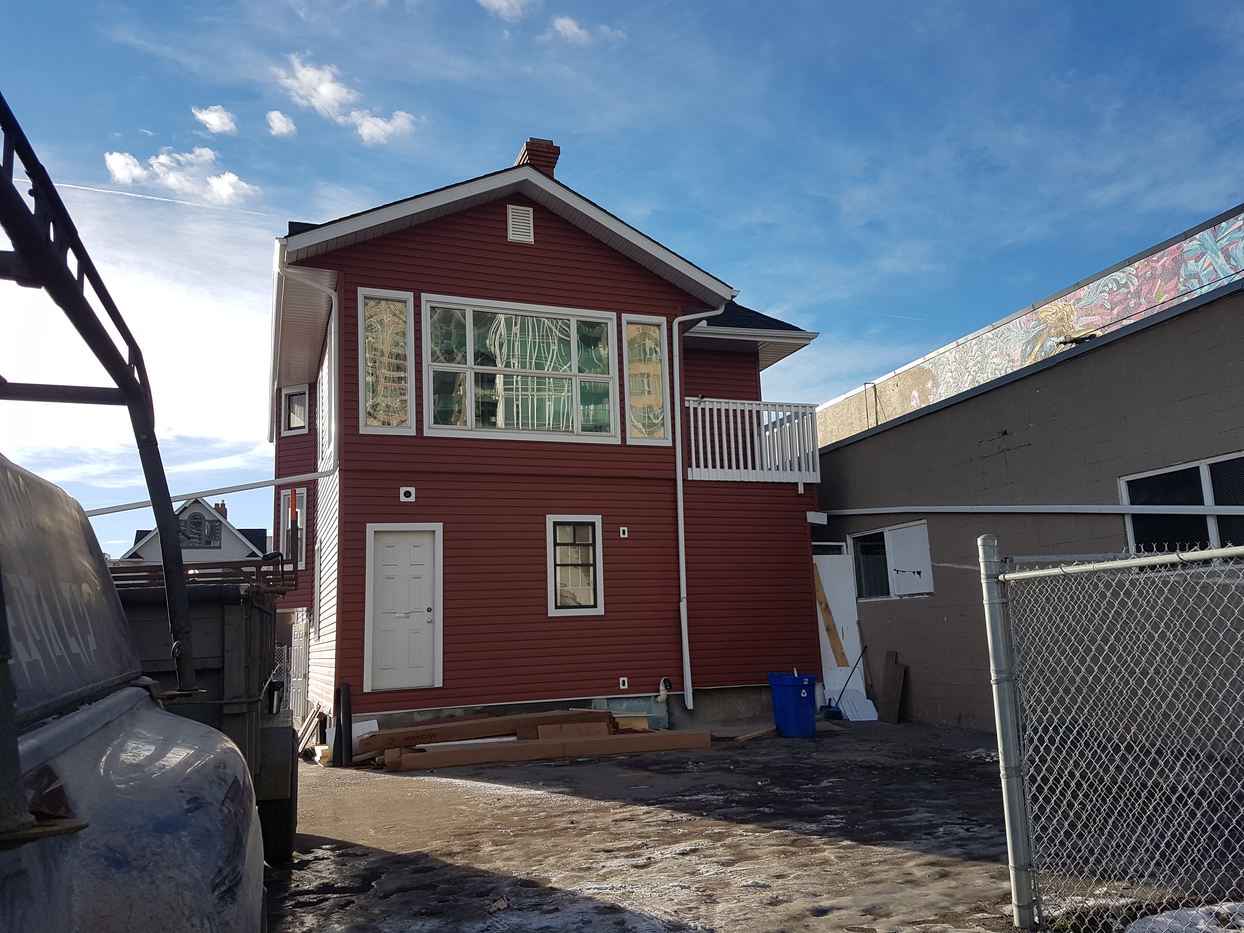 This is a house ordered from an Eaton's catalogue in the early 1900s just south of High River. Renovated with outside insulation and new siding, soffit and fascia. These pictures were before the black steel roof was installed.